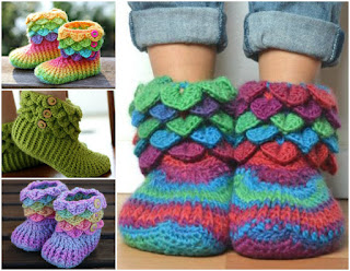 I'm working on several things at the moment. One is making crocheted crocodile slippers. Here are some.